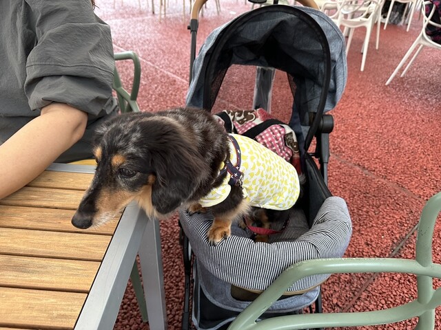 강아지와 함께♪ 푸드코트 옆 테라스 자리에서♪ 걷다가 피곤해져서 커피 브레이크♪
