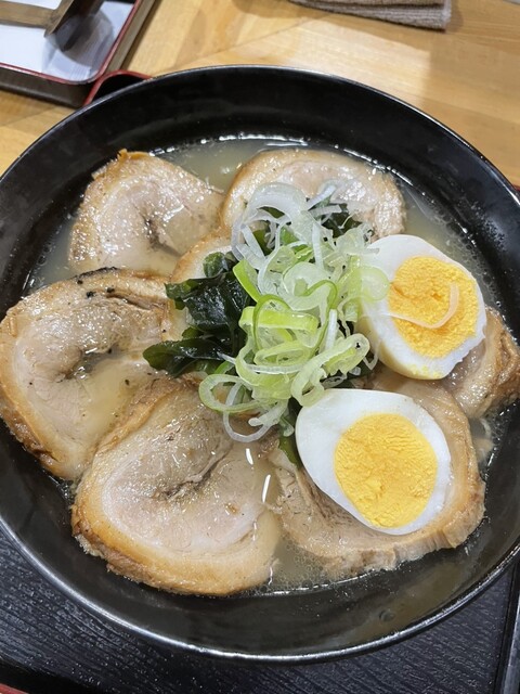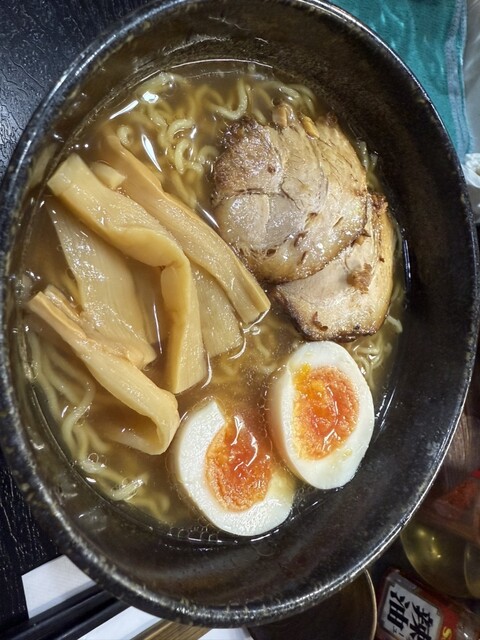 옛날 스타일의 중화소바 느낌이 나지만, 차슈는 불향이 나고 부드러운 구운 차슈입니다.