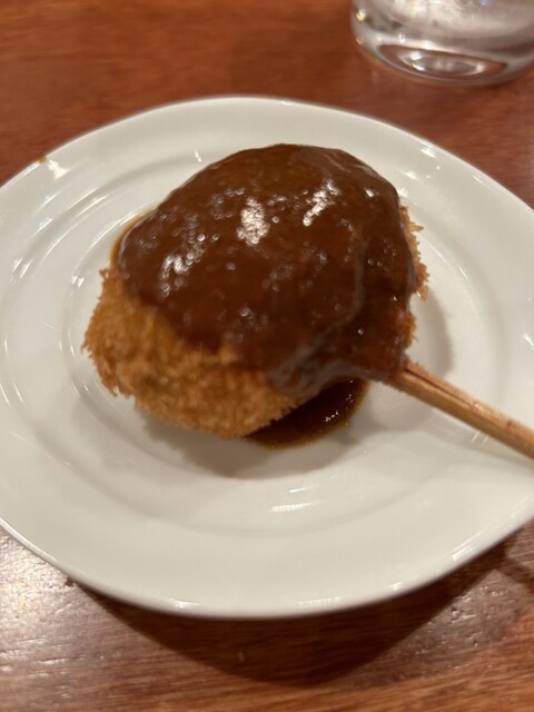 프린스 거리 "신카르이자와" 교차로 근처에 위치한 1950년 창업의 전통적인 꼬치카츠 전문점.
