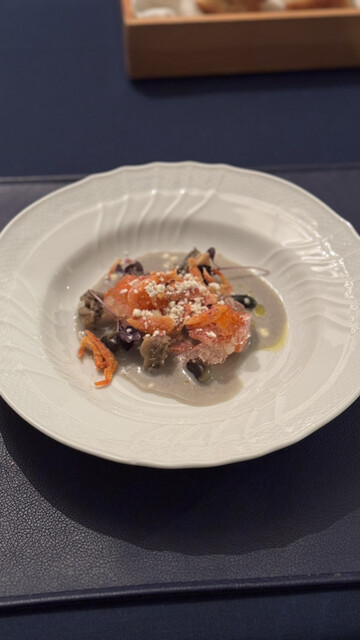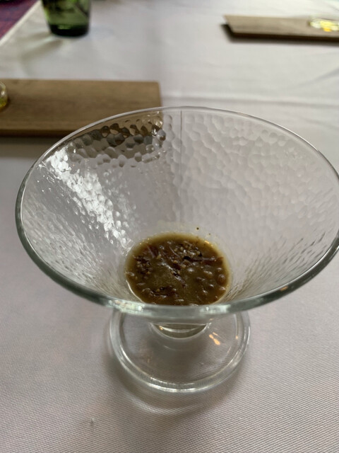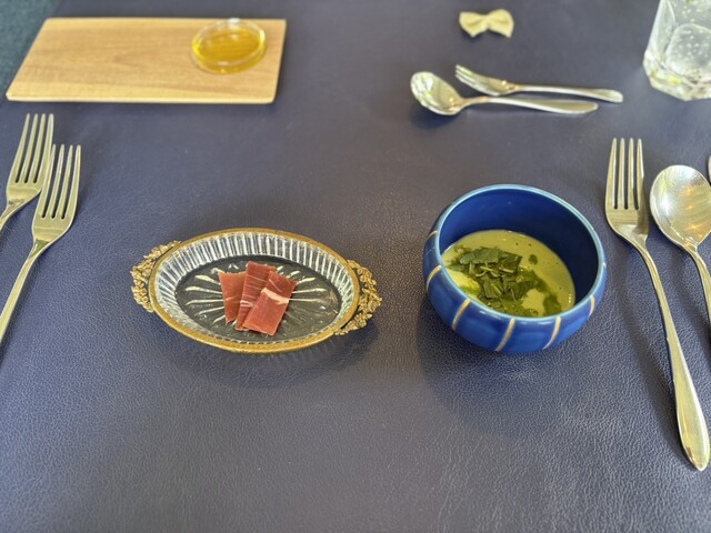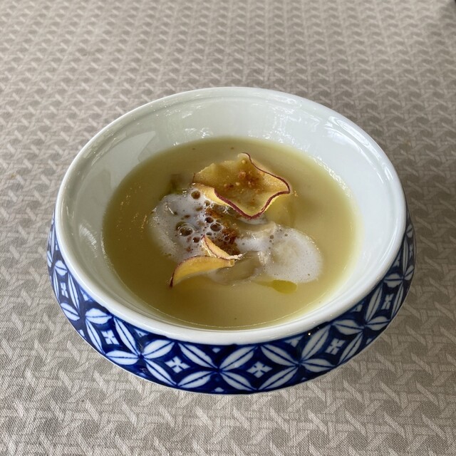 오늘부터 가루이자와에서 2박입니다. 첫날 저녁은 올해 두 번째로 L'ombra입니다. 오늘은 이탈리안 위크라는 것으로 발효 이탈리안 요리입니다. 고구마와 밤 수프는 된장을 숨은 맛...