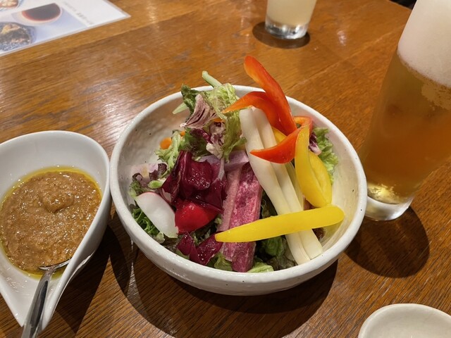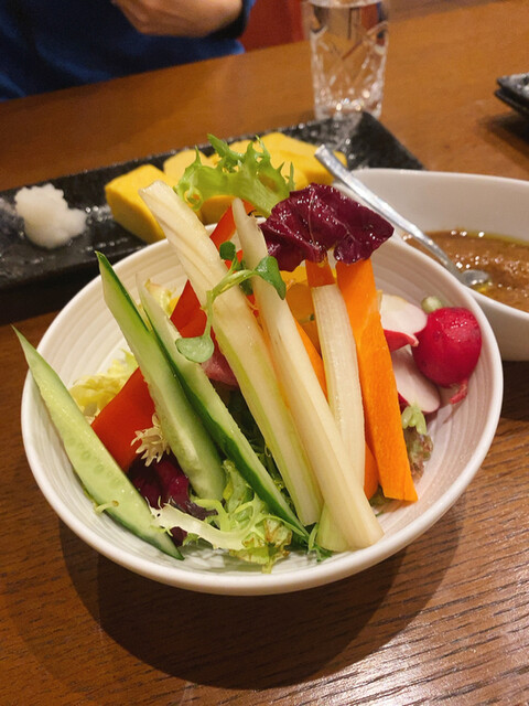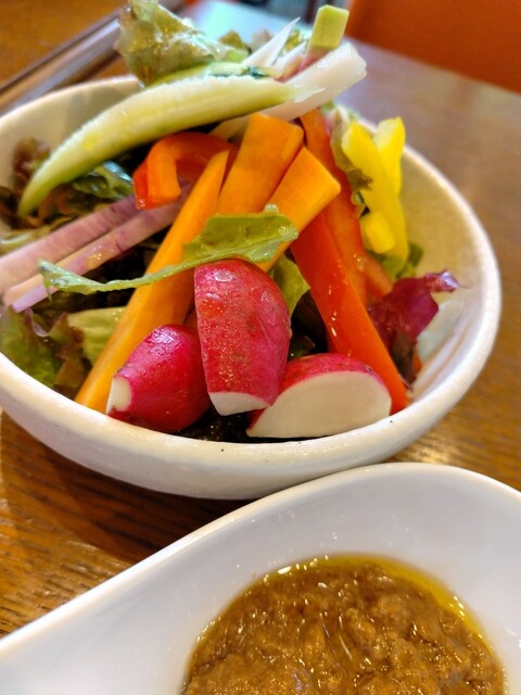 루그랑의 프렌치는 맛있지만 가벼운 식사를 원할 때 이 가게가 편리합니다. 재료와 양념이 역시 맛있습니다. 바냐카우다는 신선한 채소와 된장 소스가 잘 어울립니다. 술안주로는 게 내장...