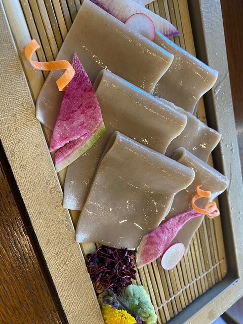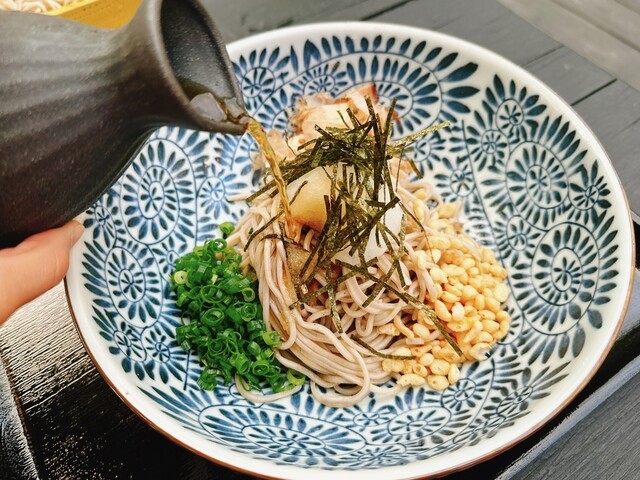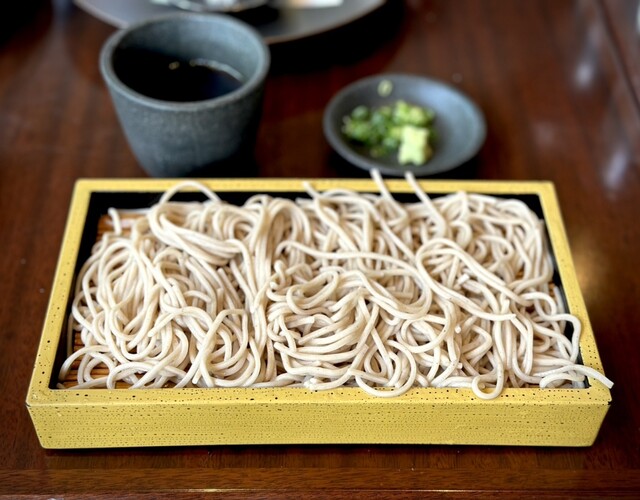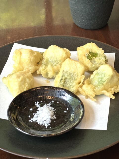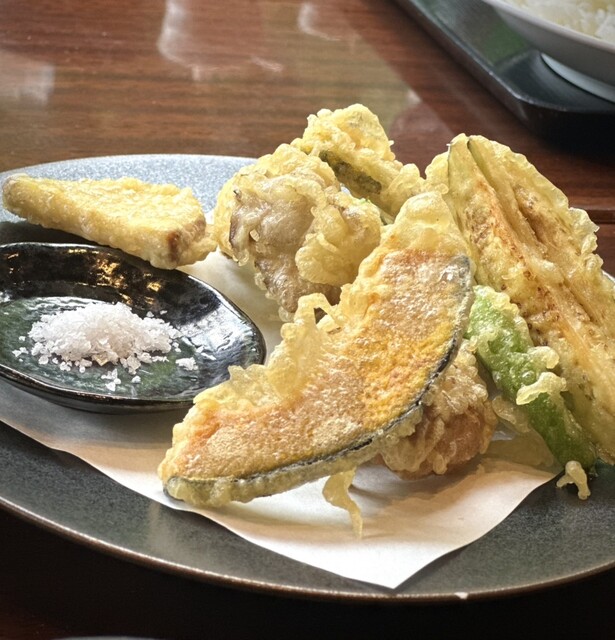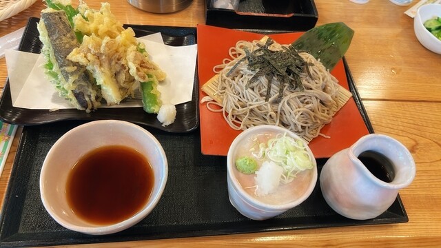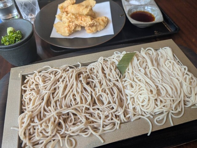 북가루이자와의 아사마 목장 근처에 위치한 소바집 실노리는 항상 붐비고 있습니다. 오늘은 근처에 볼 일이 있어 점심을 먹으러 왔습니다. 추천 메뉴는 호두 소바지만, 오늘은 야채 튀김...