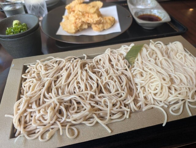 가루이자와의 호텔 부지 내에 있는 온천 바로 옆 레스토랑✨ 온천도 최고였지만, 여기서의 식사도 대만족❤️ 이번에는, 더사라 소바와 이나카 소바를 한 번에 맛볼 수 있는 합모리 소바...