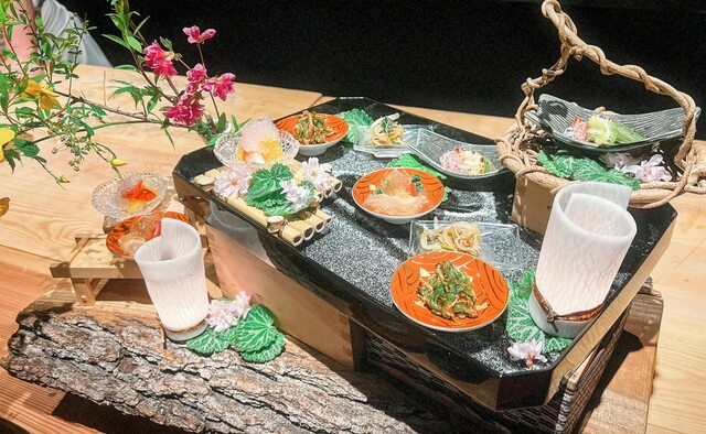 다양한 맛있게 만드는 연출을 봐왔지만, 이 가게의 가이세키 요리 '가루이자와' 연출은 정말 놀랍습니다!