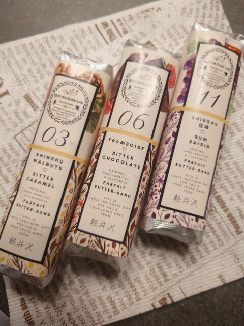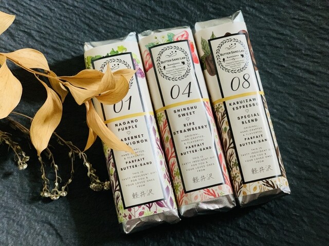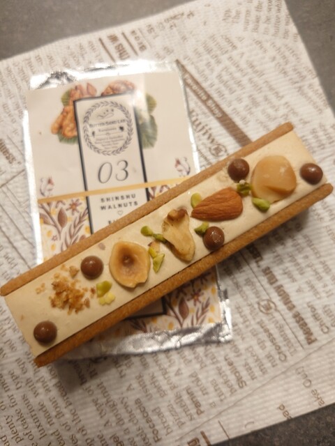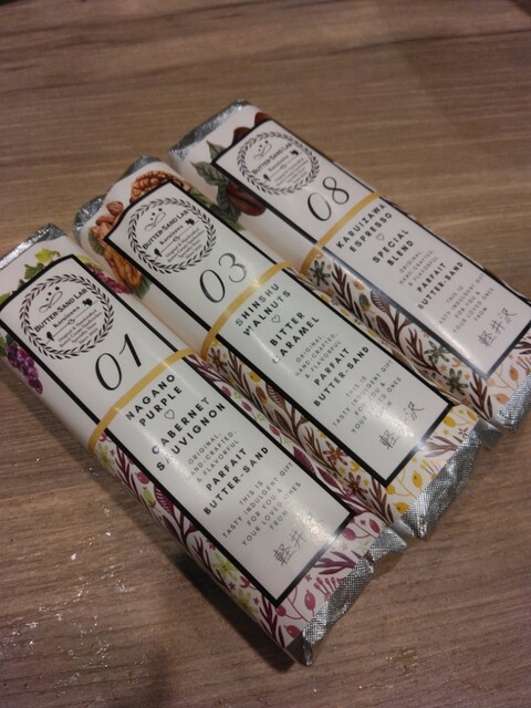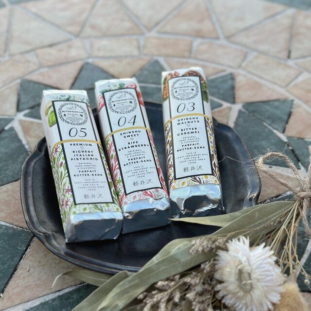 이 가게에서는 신슈산 과일과 호두를 사용하고, 신슈산 밀가루로 만든 정성이 담긴 버터 샌드를 맛볼 수 있습니다.
