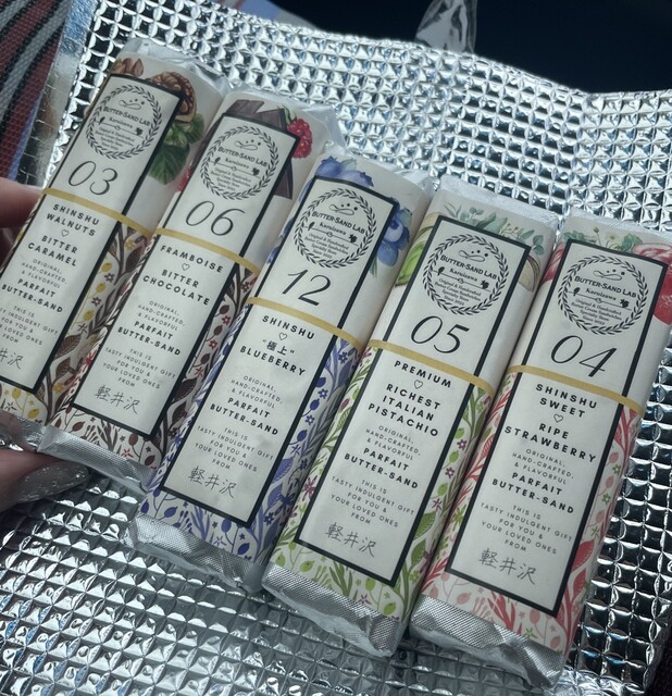 가루이자와의 인기 있는 버터 샌드를 맛보았습니다.