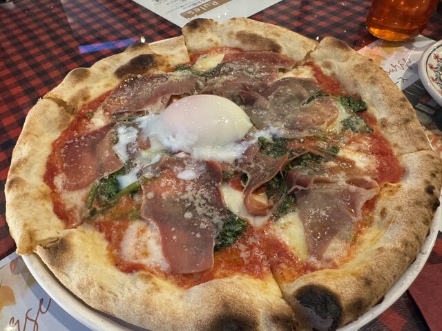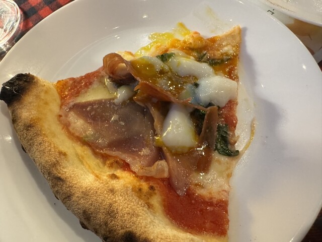 "부드러운 반숙 계란과 닭 햄의 비스마르크"에서 닭 햄을 +500엔 추가하여 생햄으로 변경했습니다… 이건 꽤 양이 많고 맛있습니다. 반죽도 조금 두껍고, 소금 맛은 약간 강한 편입니다. 반죽 주변의 코르니치오네도 괜찮은 맛입니다.