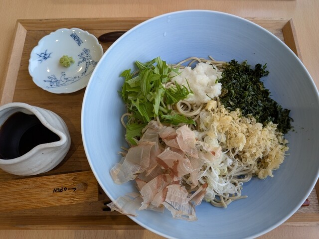 지금까지 관광객에게 그다지 알려지지 않은 가루이자와의 소바 가게라서 첫 방문했습니다. 가게는 주택가에 위치해 있어 다소 갑작스러운 느낌이었습니다. 간판 메뉴인 이팔 소바와 제철 채...