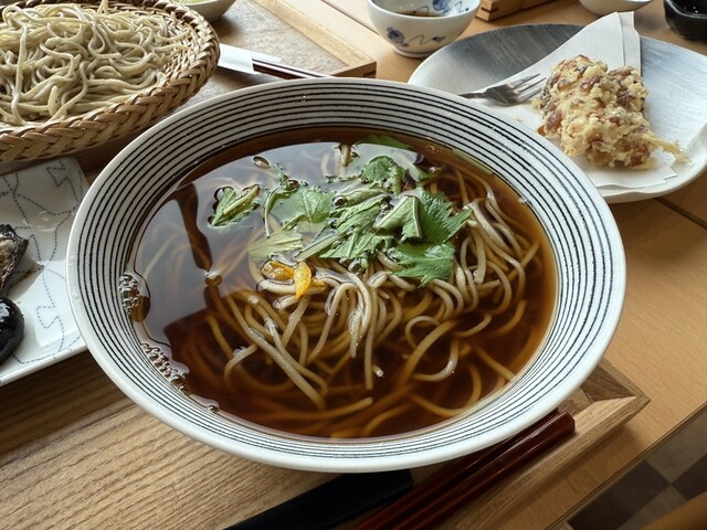 인스타그램에서 본 고향 오요다 마을의 소바 가게, 소바노미 enishi에서 오리 세이로 니하치와 제철 굴 세이로를 맛보았습니다.