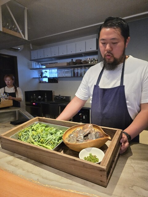 산채를 채취하러 가는 것을 좋아한다고 말하는 니시모토 셰프.