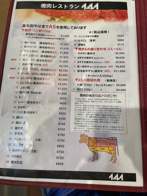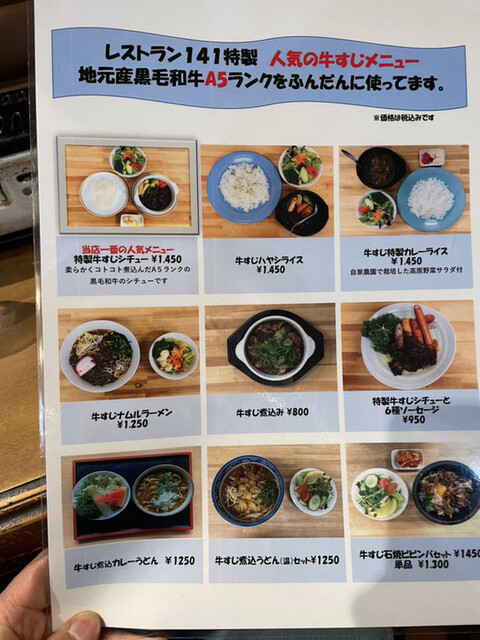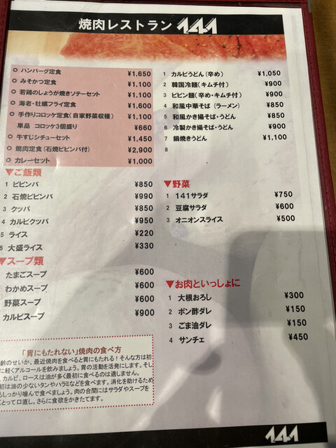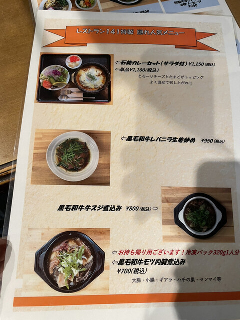 올해 마지막 스노보드 & 스키 합숙. 아내의 재택근무 스트레스를 조금이나마 덜어주기 위해, 시끌벅적한 둘째 아들을 겨울 방학 첫날부터 데리고 나가서 1주일을 보냈습니다. 과자 가게인 샤토레이즈 스키장이 홈 게렛데이지만, 돌아올 때 온천에 들어가서 여기저기 생긴 타박상을 치료하는 것이 일상이었습니다. 온천에서 자주 묵는 숙소로 돌아가는 길목에 패밀리 레스토랑 같은 그 가게가 있습니다. 이전에 큰아들이 "레스토랑 이시이"에서 먹고 가자고 한 이후로 우리 가족에선 그렇게 부르고 있지만, 간판에는 "레스토랑 141"이라고 적혀 있습니다. 어릴 적 마루이를 "오이오이"라고 생각했던 아빠로서는 가볍게 무시할 수가 없습니다. 참고로, 가게 앞의 고개가 국도 141호선이기 때문에 이렇게 명명된 것 같습니다. 큰아들의 발언을 듣고 처음 문을 두드린 것은 1년 전이었습니다. 온천에서 여유를 즐긴 후라 정확히 20시를 넘은 시점이었지만, 폐점 시간이었기에 들어갈 수 없어 그 이후로는 그냥 지나치는 가게가 되어버렸습니다. 합숙 최종일. 마지막에는 밖에서 먹고 싶다는 둘째의 요청에 따라 방문하게 되었습니다. 가게 외부에서 테이블마다 설치된 배기가스를 보고 "자기 스스로 고기를 구울 수 있는 것이다"라며 흥분하는 모습을 보니, 햄버그 정식을 예상하고 있던 아빠의 계획은 무너졌습니다. 구이판은 쇼와 시대 느낌이 나는 가스식 로스터입니다. 한 마리 구매한 A5 흑모 와규라고 하여 둘째는 지금까지 먹어본 고기 중에서 가장 맛있다고 기뻐하고 있었습니다. 알코올을 마실 수 없어 다소 구이 기분이 나지 않는 아빠는 "정말? 더 좋은 고기로 바베큐를 해본 적도 있는데" 등으로 물을 흘리지만, 항상 맨 정신인 둘째의 평가가 더 정확할 가능성은 부인할 수 없습니다. 기뻤던 점은 호박, 에링기, 버섯 등이 서비스로 제공된 것이었습니다. 상추의 된장은 양도 맛도 좋고 구운 야채에 찍어 먹어도 맛있었습니다. 주변에 있던 3가구 정도의 단골 가족들은 모두 스튜나 햄버그 정식을 드시고 계셨는데, 꽤 많은 양과 브라운 소스의 윤기가 부러움을 더했습니다. 다음 번에는 알코올을 마실 수 있는 상황에서 바베큐를 하거나, 정신이 맑을 때 정식 메뉴에 도전하고 싶습니다. 마지막으로 계산할 때 신용카드를 내자 현금만 가능하다는 답변이었습니다. 스키장과 온천은 시즌 패스라서 지갑에 현금이 별로 들어 있지 않았습니다. 많이 당황했지만, 간신히 잔돈까지 모아서 겨우 결제했습니다. 페이페이까지는 말하지 않겠지만, 신용카드 정도는 쓸 수 있도록 해주시면 감사하겠습니다. 맛있게 잘 먹었습니다.