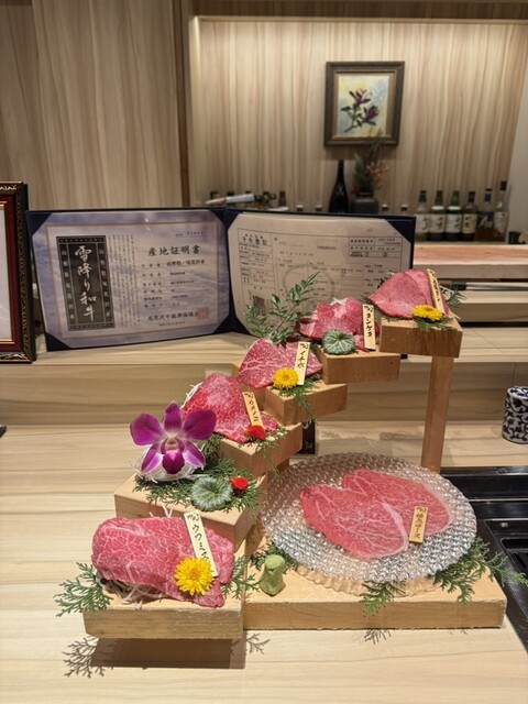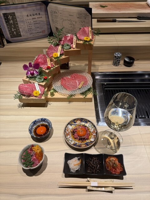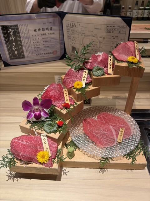 지방, 육질, 생산자, 사육 기간에 신경을 쓰며, 살아있는 상태에서 숙성된 소고기는 다른 곳에서는 맛볼 수 없는 깊은 맛을 자랑합니다. 부위별로 세심하게 손질하고, 각 부위에 맞는 컷과 조리를 합니다. 'A5 등급'이나 'A4 등급'이 중요한 것이 아닙니다. 진정으로 맛있는 소고기는 혀에 올리는 순간 알 수 있습니다. 맛이 다릅니다. 장기 사육된 암소에 집...중하며, 대표가 직접 경매장에 가서 구매합니다. 진정한 고기 애호가라면 꼭 한 번 드셔보세요. 서신사이바시점 한정의 히레카츠 샌드위치도 큰 주목을 받습니다.