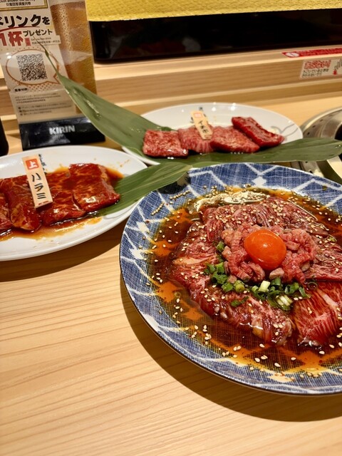 흑모와규를 한 마리 통째로 구매하고 있어서 고기 질이 확실하고 맛도 느껴졌습니다. 특히 인상적이었던 것은 제공 스타일로, 회전 초밥처럼 고기가 흐르는 연출이 참신했습니다. 기다리는...