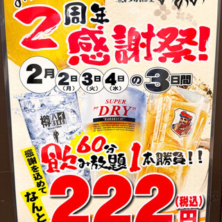 【몬젠나카초역 도보 3분】200종 이상의 메뉴와 사누키 명물 뼈닭을 즐길 수 있는 일본식 창작 이자카야!