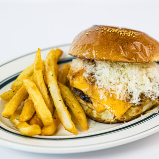 ◆철판에서 구워내는 100% 치킨 햄버거◆매일 구워내는 수제 버터 번과의 궁합이 뛰어납니다