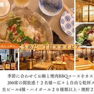 새롭고 향수를 불러일으키는 쇼와 레트로 우메다 야타이에서 즐기는 전골 & BBQ. 최대 200석! 4개 제조사의 생맥주