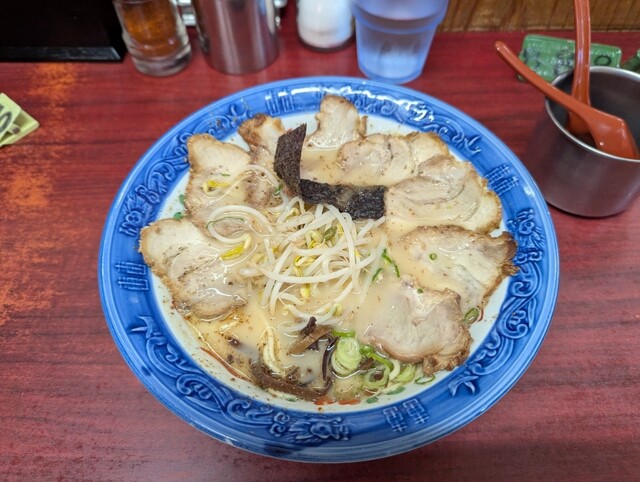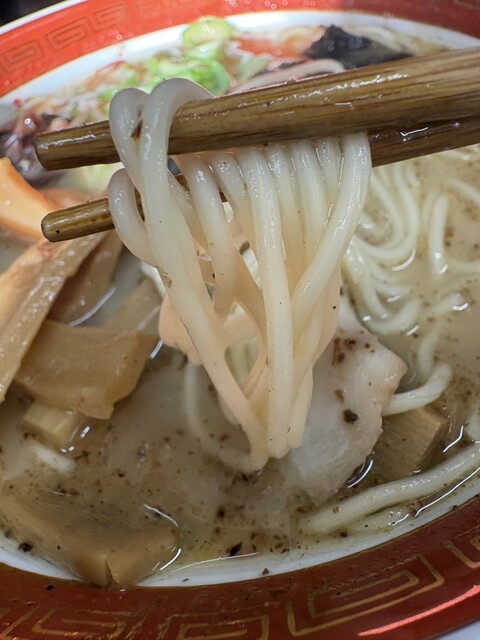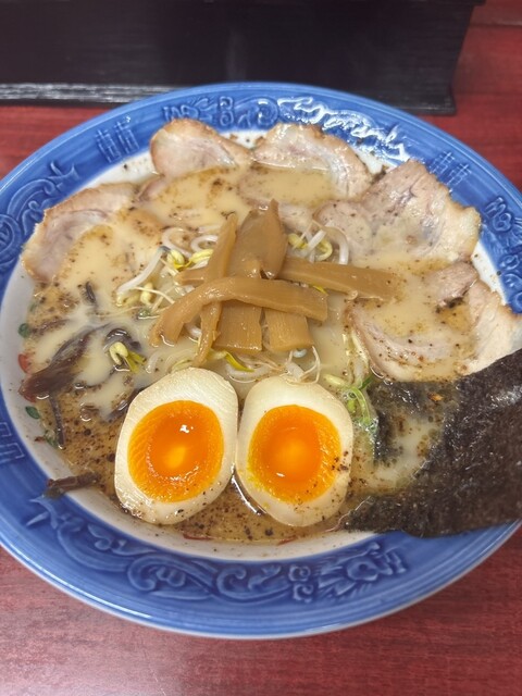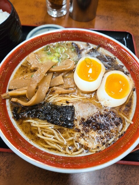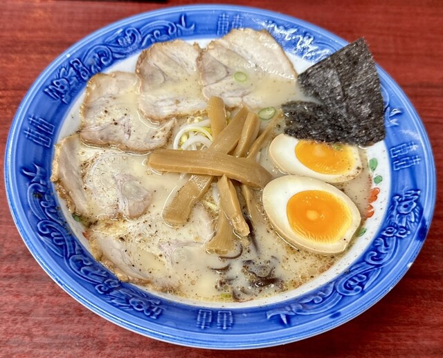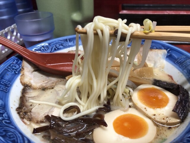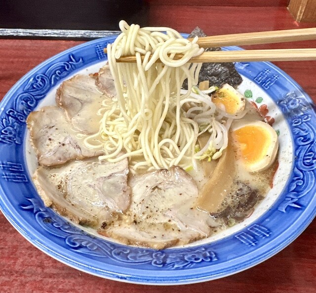 昭和55年創業の熊本ラーメンの名店。豚の頭骨を8時間かけて抽出するスープはクセがなくコクがたっぷり。徹底的にアクを取り除くことで濃厚だがスッキリ。焦がしニンニクの香ばしい風味とブレンドされておいしい。...