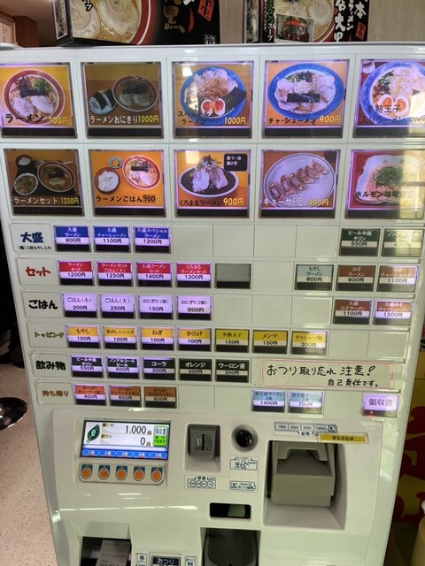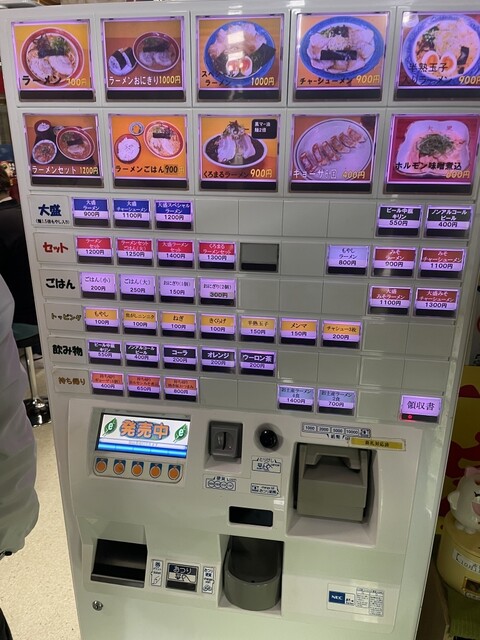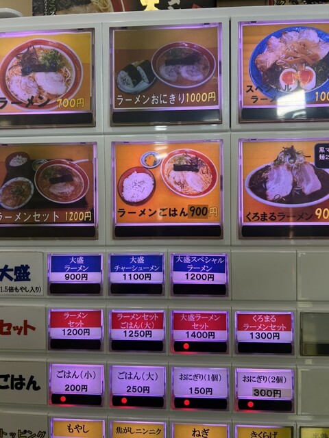 大盛りラーメン900円です。平日の11時15分頃に訪問、テーブル席が3つ空いているだけでした。すぐに満席になり、待ちが発生しました。入口の券売機で購入し席に着きます。10分後ぐらいに配膳されました。接...