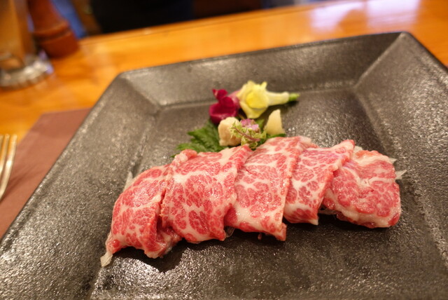 ステーキのコースで馬刺しが提供されるのは熊本の店ならではでしょう。