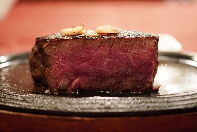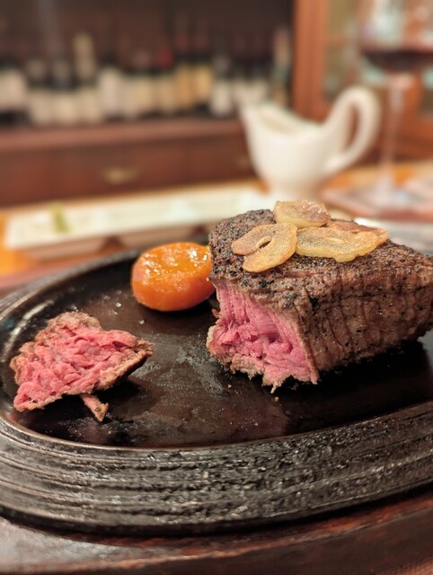 無駄を削いだステーキとして提供されるシャトーブリアン、火入れ含め感動の一品です。