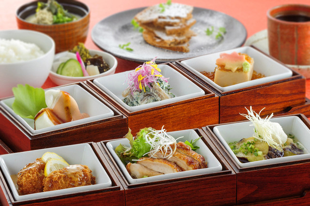 鉄板チキンステーキ、六白黒豚の冷しゃぶ、ハーブ鶏のみぞれあんかけ、和牛の酒蒸し鉄板、カツとじ、ハンバーグ、唐揚げ、ビビンバ…お肉メインの豊富...