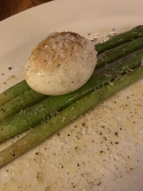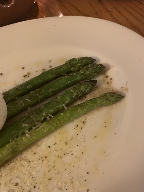 アスパラガスは食感がよく美味しかったです。ピザは香ばしくこれも美味しかったです。