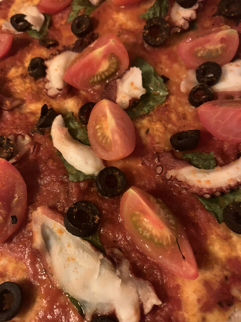 最後はアスパラガスのなんとかとなんとかピザにしました。酔っていてうろ覚えです。