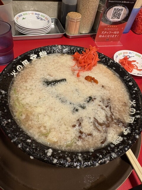 濃厚豚骨と背脂たっぷりの一杯が名物で、県外からもファンが訪れるお店です。