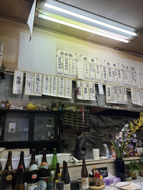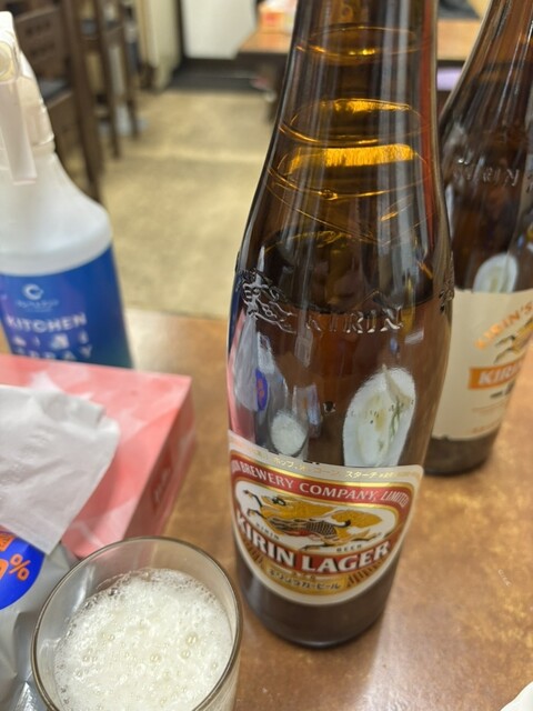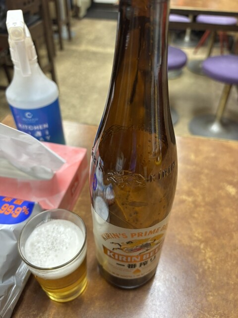 初めて来ました。キリン一番搾り大瓶700円を注文。ニラ玉子470円をツマミにします。ニラ玉子は優しい味で野菜が添えられてます。お好み焼きは現在お休み中、他に都合で出来ないメニューもあるようです。閉店時間が近いようで焼きちゃんぽん700円、キリンラガー大瓶700円を追加注文。会計2250円。