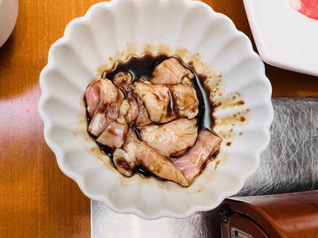 ぷりっとしたレバーにゴマ油を付けて頂くとなんとも言えない美味しさ。