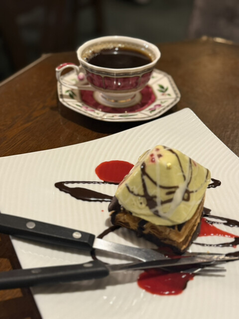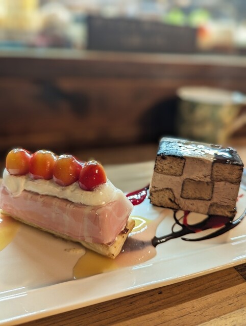 この日は、「べべ」さくらんぼをあしらったフランボワーズムース仕立てのりんごパイのケーキと、「ラディオ」チョコムースとハーブリキュールを織り交...