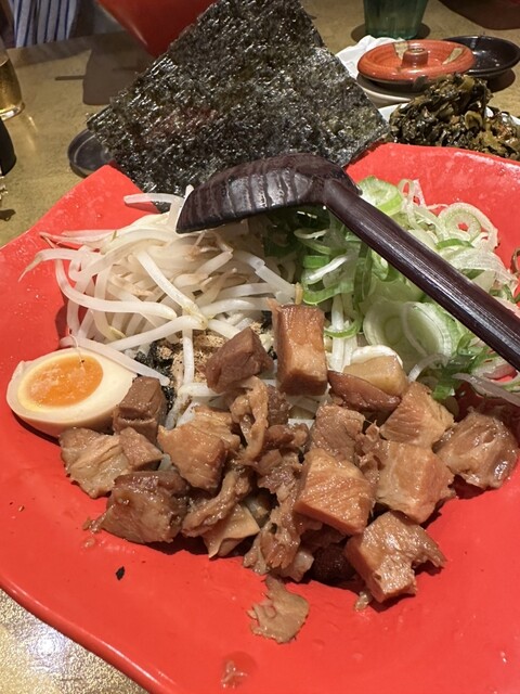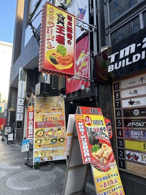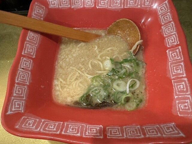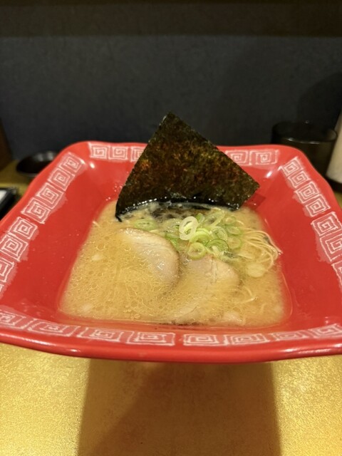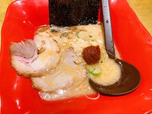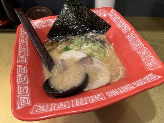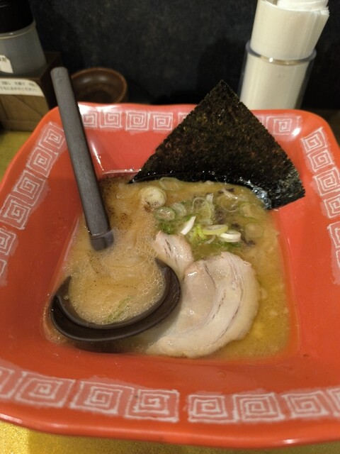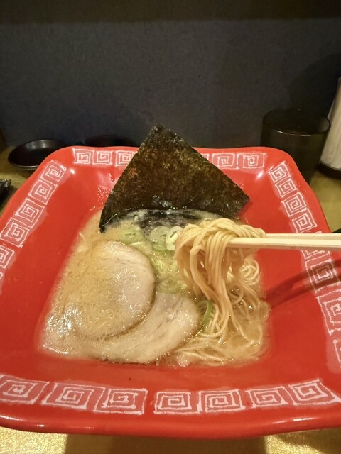 スープは背脂の浮いた王道豚骨スープで、私の少ない経験の中では、熊本というより博多系の豚骨の味わいに近いな~と。スープ自体は濃...