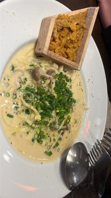 和牛でウニを巻いたり クリームパスタに板ウニを乗っけたり おしゃれなバルなのに 日本の要素が散りばめられていて 限りなく日本舌に近いおしゃれなお料理が楽しめます。 お... 詳細を見る