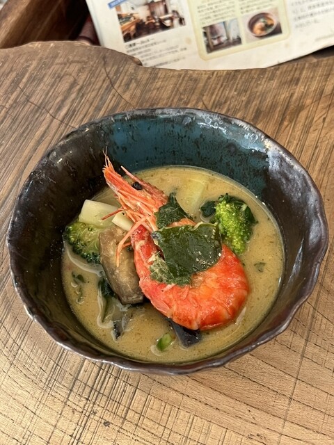 また来てまた食べすぎた。笑 相変わらず平日でも賑わってる。 Wカレー+ミニトムヤムクン+ココナッツぜんざい。 あ、パクチー追加で。 1人前のトムヤムクンをつけれるお店はここだけしか見たことない。 ここのトムヤムクン、ココナッツミルクを使ってないから非常にあっさりしていて、食べやすい... 詳細を見る
