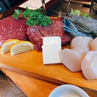 厳選牛希少部位『フィレ肉』と『牛タン』と『海鮮』です。どうぞ目の前の鉄板を使って、存分に皆さんでシェアいただければ幸いです。※お一人様プラス550円(税込)で白角ハイボール飲み放題