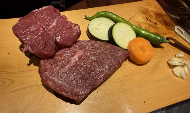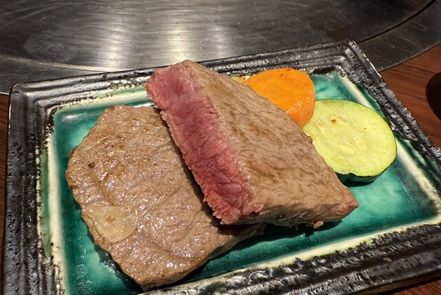 ステーキ鉄板焼きを食べる! 今までの私の常識では、カウンター形式(時にはテーブルもありますが)の向こう側にキッチンの方が焼き手になって、注文品(ほとんどがコース仕立て)を会話の合間合間に出してくれる。 食べる・飲むペースが少し我々主導ではない、時折必要以上に緊張するようなお店も数多しでした。 今回うかがったこのお店は、基本自分たちで焼く好み加減!味付け(塩・コショーなど加減)できるんです... 詳細を見る