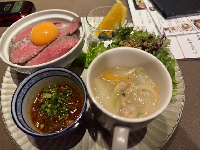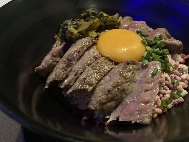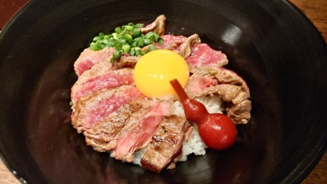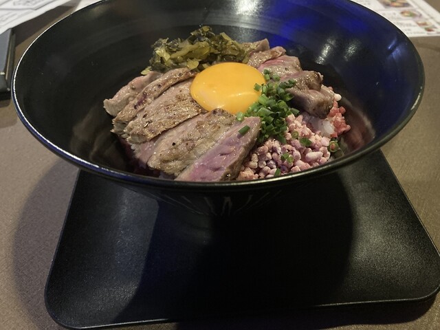 熊本中心市街地の肉レストラン。内装はお洒落なデザイン、夜は一層雰囲気出そうです。昼は丼もの中心、あか牛&馬肉、天草大王推し。県外からきたときに手軽に熊本グルメを堪能できます。