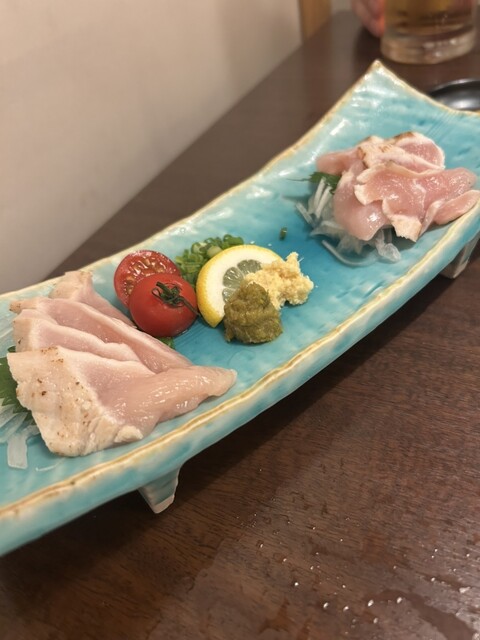 鶏の造り盛り合わせ/ひな鶏の半身唐揚げ