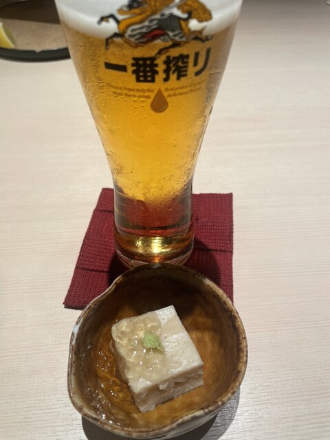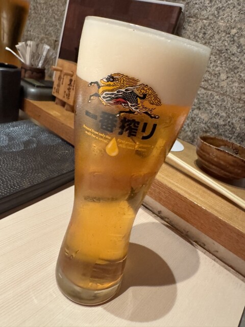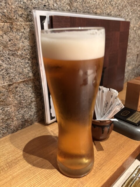先ずは生ビール。高級店やお洒落なお店に多い少し大きめのビールグラス。