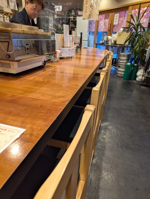 店内は、料理人さんの作業風景や息遣いすら感じられるような、楕円形のカウンター席が主体です。この距離感が、料理の出来立てをすぐに提供してもらえるメリットを生み出し、また、スタッフの方に声をかけやすく、追加注文などもスムーズに行える雰囲気を作っています。店員さんは無駄に大きな声を張り上げることなく、落ち着いた姿勢で接客されており、この点もお店の居心地の良さを高めている大きな要因だと感じました。