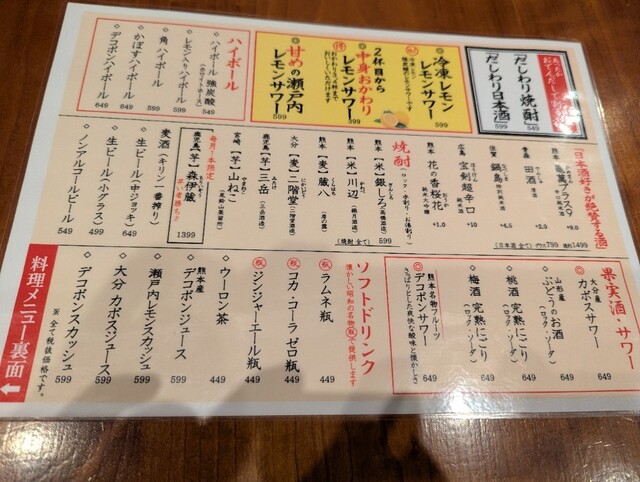 | ドリンク | 日本酒あり、焼酎あり、ワインあり |