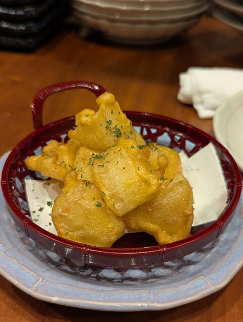 外見は普通の唐揚げですが、中に入っているのは、塩だしスープの味わいが芯までしっかり染み込んだ大根です。カラッと揚がった衣の中に、じゅわっと出汁の旨みが広がる大根が現れるという、新食感と深い味わいの両方が楽しめる意外な逸品です。