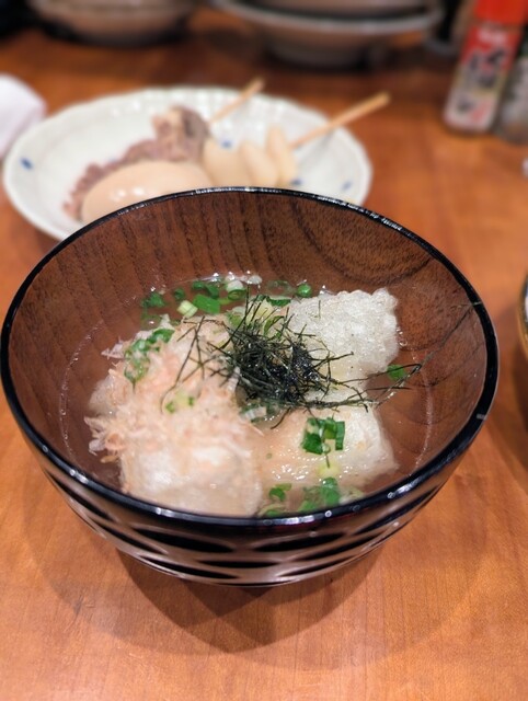 ネーミングも可愛らしいこの一品は、外はサクッと香ばしく揚がり、中は文字通りとろーりとした食感のお餅が特徴です。特筆すべきは、お餅にかかる出汁で、お店自慢の塩だしスープが使用されているようなしみ込み方で、揚げ餅の香ばしさと出汁の旨みが絶妙なハーモニーを生み出していました。