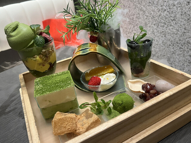 日本茶の発祥地とされ、世界遺産にも認定される、京都・嵐山高山寺の茶園を700年以上守り続ける宇治茶の老舗「丸利吉田銘茶園」の本格抹茶を創作スイーツで提供。幻想的なシーンに出逢える「お抹茶・玉手箱スイーツ」をはじめとするスイーツメニューは味覚も見た目も映える和テイスト。組合せ6パターンのランチセット、スイーツ系・ミール系が揃う窯焼きピッツァなど、“選べる”フードや、こだわりのドリンクも充実。