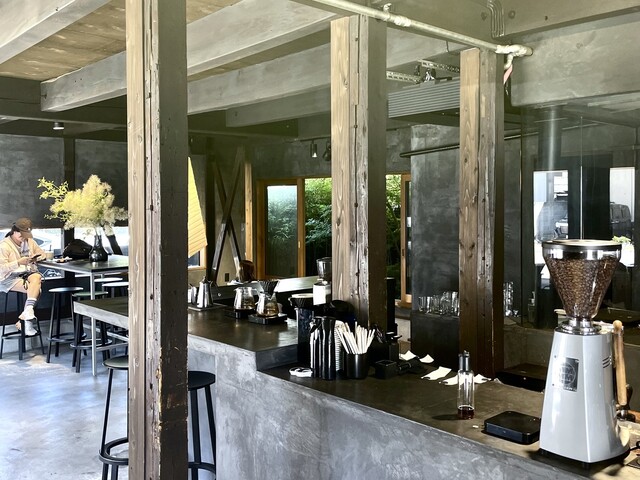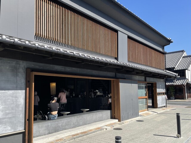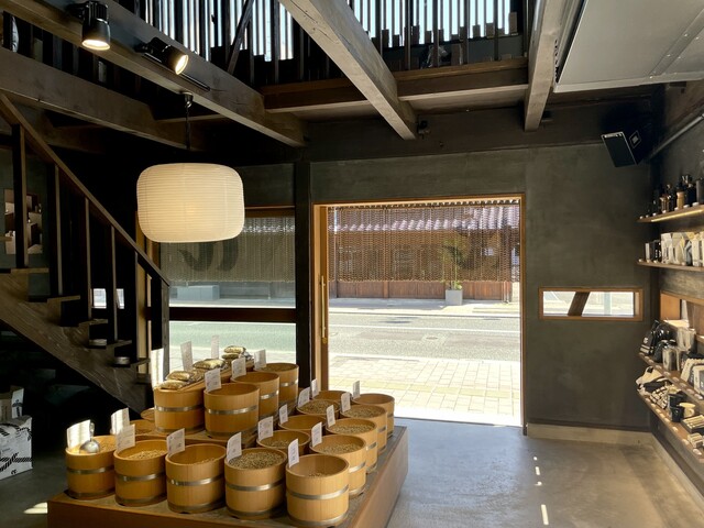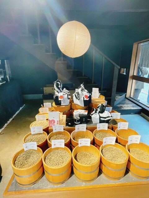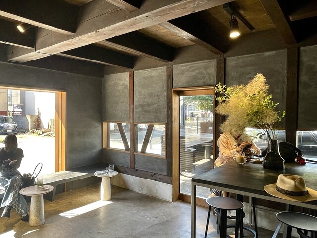 和をモチーフに古民家のようなカフェはとってもおしゃれな雰囲気です。店頭にコーヒーの生豆をディスプレイし、少し本格的なコーヒー屋さんといった雰囲気も抜群。