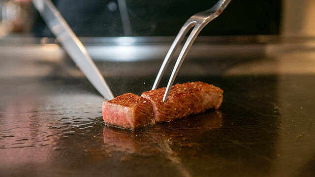 鉄板焼きを焼いてる様子 (by お店)