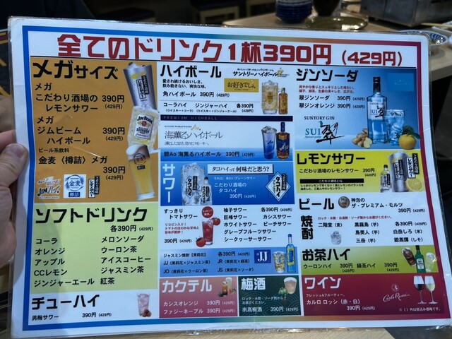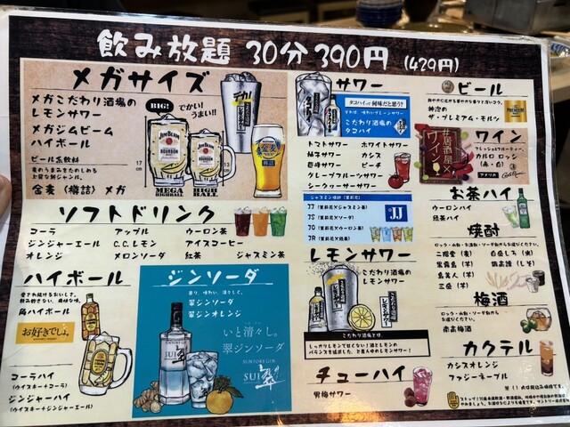 390円という設定ですが飲み放題が自動延長なんでサクっと飲むには安上がりだと思います。
