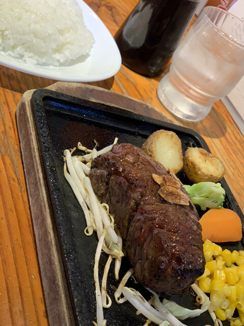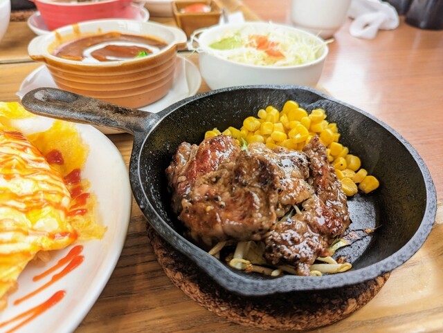 中落ち肉のステーキとオムライス、ビーフシ...