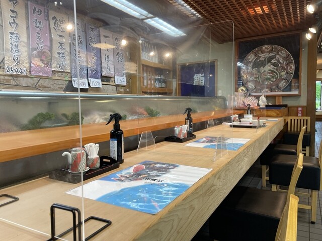 店内は、生簀もありカウンター席が入り口に、奥に和座敷席があります。