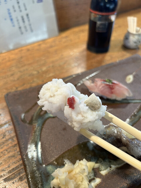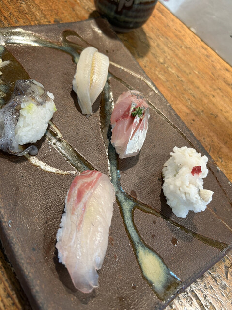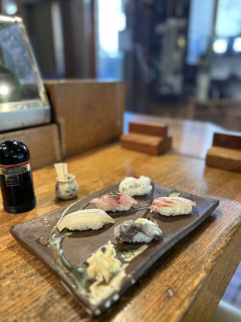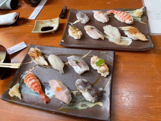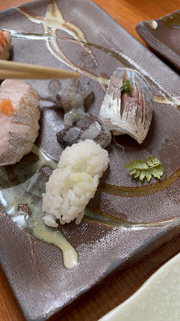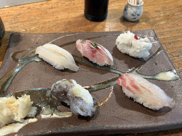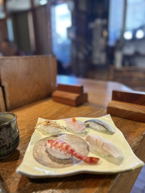 メニューを見ても 文字だけの 上にぎり…まっちゃにぎり…… ピンとこないので おばちゃんに説明いただき 4人で まっちゃにぎり 並にぎり二つずつ 半々に...